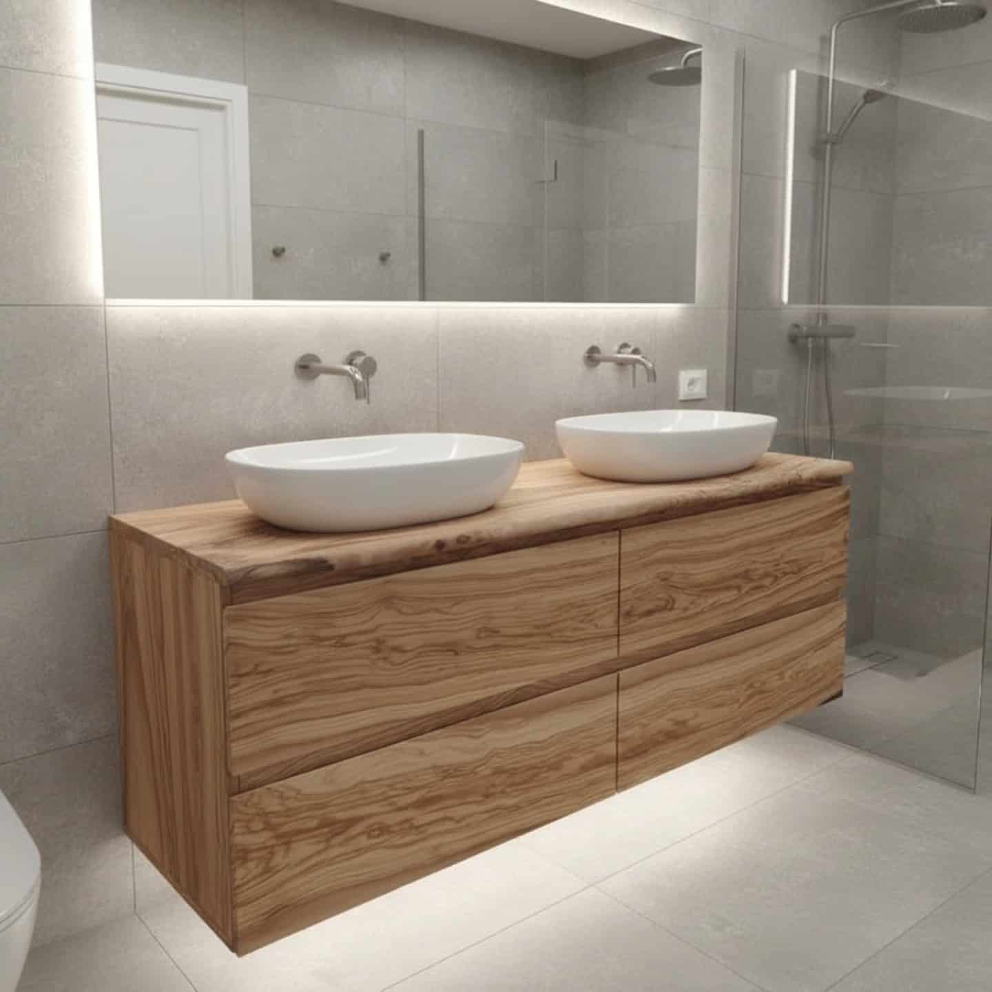 Mobile da Bagno Sospeso in Legno di Ulivo Massello – Design Elegante e Personalizzabile
