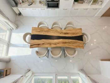 Tavolo unico in legno di ulivo massello con fiume centrale in resina nera opaca – pezzo artigianale esclusivo 2.600,00 € - 3.150,00 €Fascia di prezzo: da 2.600,00 € a 3.150,00 €